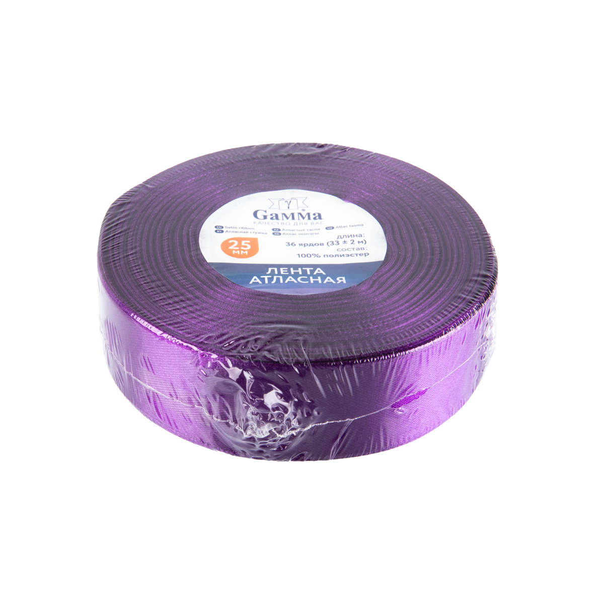 Лента атласная 25 мм ( 1 ") "Gamma" в ТЕРМОПЛЕНКЕ 33 м ± 2 м