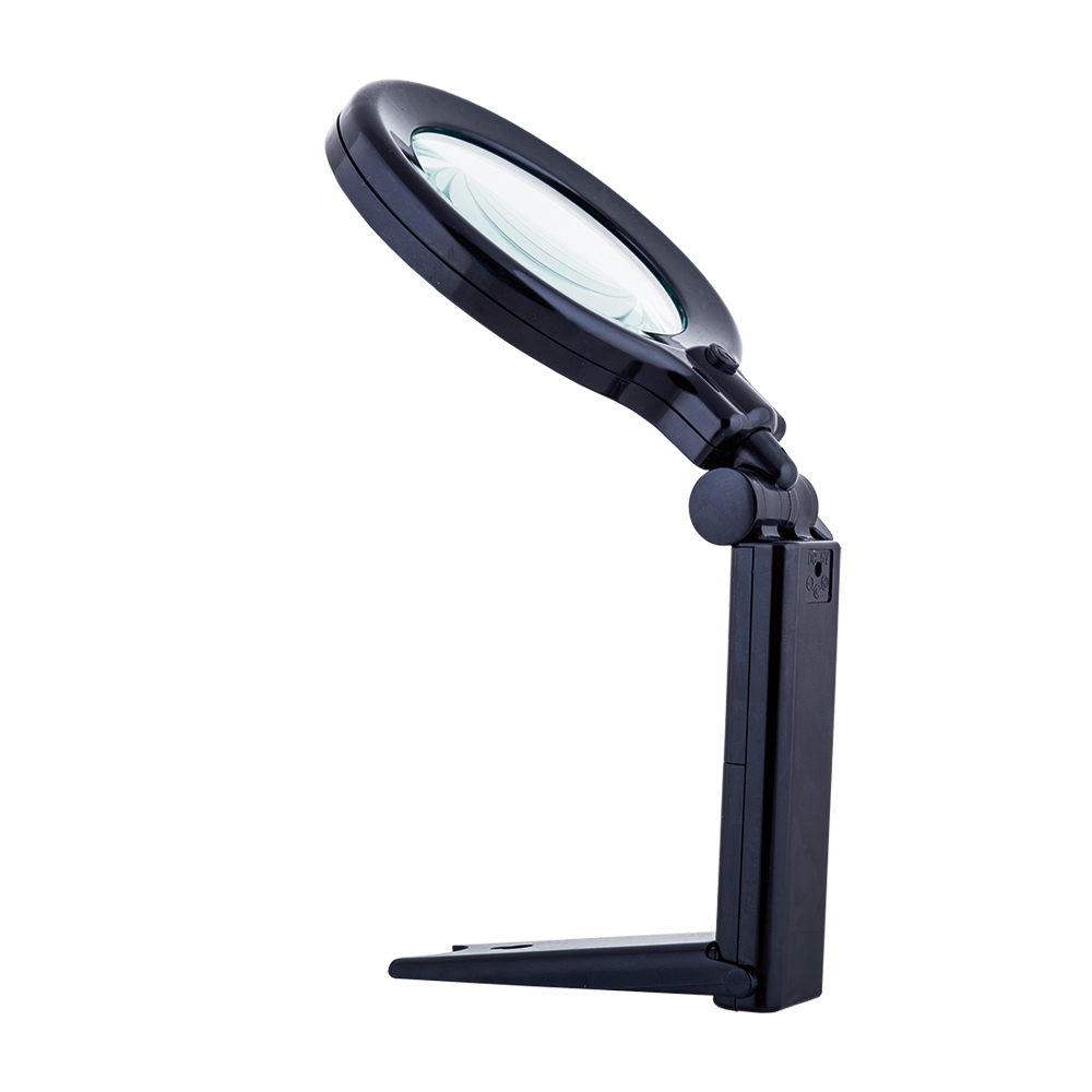 Эту универсальную лупу можно использовать в качестве полноценной лупы с ручкой и как настольный светильник. На корпусе имеется клапан, который отгибается и используется как опора. Благодаря этому руки остаются свободными, и выполнять работу становится удобно и легко.