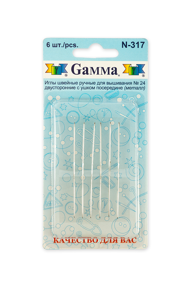 Иглы для шитья ручные "Gamma" N-317 для вышивания двусторонние №24 6 шт. в блистере