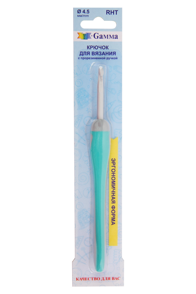 Для вязания "Gamma" RHT крючок с прорезин. ручкой алюминий d 4.5 мм 14.5 см в блистере